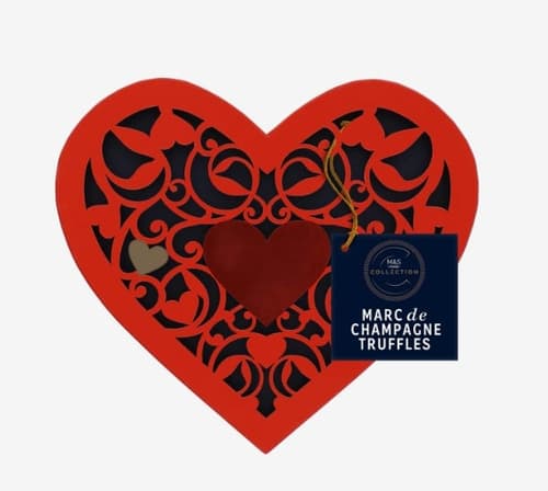 A Marks & Spencer Tejcsokoládé praliné Marc de Champagne-nal egy belga tejcsokoládéval bevont luxus desszert. A pralinék belsejében Marc de Champagne krém található, amelyet porcukorral hintettek meg.