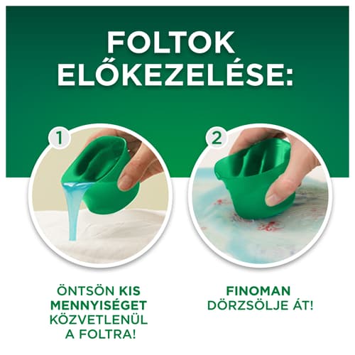 - FOLTOK ELŐKEZELÉSE: 1. Öntsön kis mennyiségű Ariel folyékony mosószert közvetlenül a foltra 2. Finoman dörzsölje át a foltot 3. Indítsa el a mosást