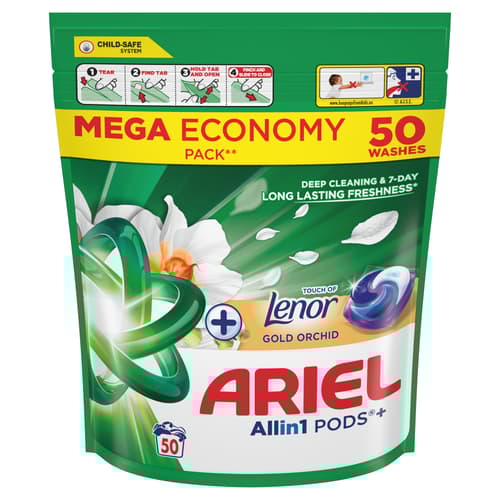 - AZ ARIEL PODS NAGYSZERŰEN TELJESÍT HIDEG VÍZBEN: Az Ariel Allin1 PODS mosókapszula már 1 mosással is kimagasló folteltávolítást és hosszan tartó, friss, tiszta illatot kínál