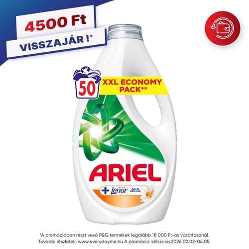 - MÉLYTISZTÍTÁS ÉS HOSSZAN TARTÓ FRISSESSÉG: Az Ariel folyékony mosószer hatékony folteltávolítást tesz lehetővé hideg vizes és rövid programok esetén is