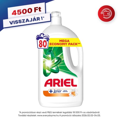 - MÉLYTISZTÍTÁS ÉS HOSSZAN TARTÓ FRISSESSÉG: Az Ariel folyékony mosószer hatékony folteltávolítást tesz lehetővé hideg vizes és rövid programok esetén is