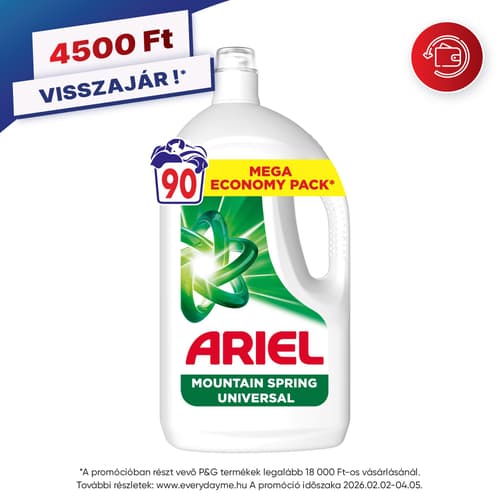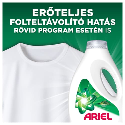 A Whirlpool, Beko, Candy és Electrolux mosógépgyártók által is ajánlott Ariel bemutatja az Ariel Mountain Spring folyékony mosószert. Már 30 °C-on eltávolítja a makacs foltokat és a kellemetlen szagokat. Formuláját kifejezetten hideg vizes és rövid programokhoz tervezték. Az Ariel Mountain Spring folyékony mosószer a foltok előkezeléséhez is kiváló; ehhez használja a zöld kupakot, majd helyezze a ruhákat a mosógépbe. A legkiválóbb eredmény érdekében a mosószert tartalmazó adagolókupakot helyezze a mosógép dobjába. Környezetvédelmi okokból nem minden flakont látunk el mérőkupakkal, azonban a kupak ingyenesen igényelhető az ariel.info webhelyen.