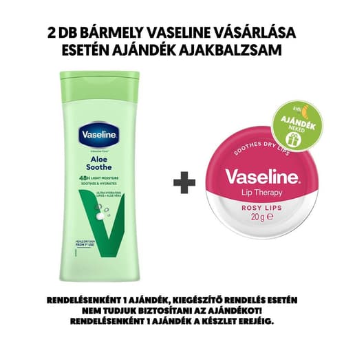 A Vaseline Intensive Care Aloe Soothe testápoló mélyen hidratálja bőrét már az első használattól, frissebb és revitalizáltabb megjelenést kölcsönözve neki. Aloe vera kivonattal gazdagított, nyugtató formulája regenerálja a száraz, irritált bőrt. Ez a könnyed, nem zsíros, 400 ml-es EU-s termék gyorsan felszívódik, így ideális a mindennapi ápolásra, bársonyosan puha érzést biztosítva.