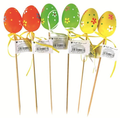 Húsvéti tojásalakú beszúrópálca, 60 mm, virágminta, vegyes színekben