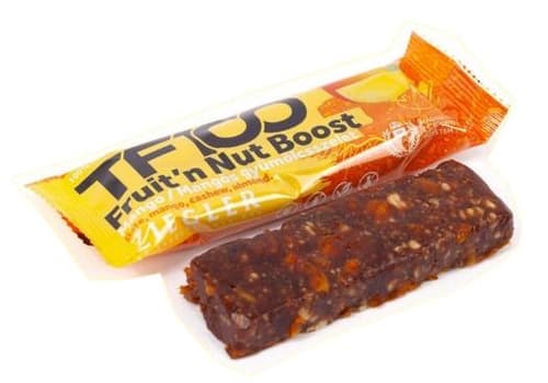 Gyümölcsszelet a Testnevelési Egyetem Sport-táplálkozástudományi központ ajánlásával. A TF100 Fruit’n Nut Boost Mango gluténmentes, laktózmentes, vegán, hozzáadott cukrot nem tartalmaz, tartósítószer- és aromamentes.