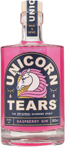 Azonban azt kiemelik, hogy ebben a különleges italban nagyon fontosak az érzelmek, a keserédes gin épp az unikornisok érzelmei hatására változik szinte elme-robbantó hatású varázsitallá, amellyel talán csak a Galaxis Útikalauzból ismert Pángalaktikus Gégepukkasztó hatása érhet fel. Nincs ez máshogy az Unicorn Tears Raspberry Gin esetében sem, az összetevői megegyeznek a normál változatéval, kivéve a csodás aromákat, és gyönyörű színt biztosító málnát.