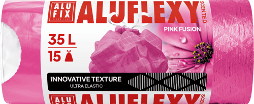 Az ALUFLEXY Pink Fusion szemeteszsák 35 literes kapacitásával ideális megoldás a mindennapi háztartási hulladék kezelésére. 🌹 Rózsaillata kellemesen frissíti a környezetet, miközben a zárószalagos kialakítás biztosítja a könnyű lezárást és higiénikus szállítást. A rugalmas LDPE anyag pedig ellenállóvá és kényelmessé teszi a használatot, így a hulladékkezelés mindig egyszerű és tiszta marad.