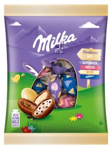 Milka Húsvéti Tojás Mix egy válogatás alpesi tej felhasználásával készült tejcsokoládéból, fehér csokoládéból és töltött tejcsokoládéból. Ideális választás az ünnepi időszakra.
