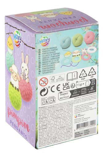 A színes pom-pomok vidám, texturált hatást adnak a húsvéti alkotásoknak, miközben kreatív elfoglaltságot biztosítanak a gyerekeknek. Ideális családi kreatív programnak vagy ünnepi dekorációnak.