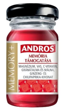 Az Andros Shot Memory+ egy gyümölcsös ital málnával, gránátalmával és chilipaprika-kivonattal. Magnéziumot, vasat és C-vitamint tartalmaz, amelyek hozzájárulhatnak a kiegyensúlyozott étrendhez.