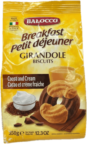 Olaszország,Balocco Girandole reggeliző keksz kakaóval és tejszínnel