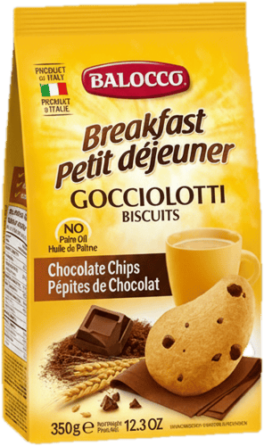 A Balocco Gocciolotti az olasz reggelik egyik legnépszerűbb szereplője, ahol az omlós tészta és a bőséges csokoládé találkozik. Ez a keksz azoknak készült, akik már a nap első pillanatában vágynak egy kis édes kényeztetésre. A "Gocciolotti" név a benne lévő nagyméretű csokoládécseppekre (gocce) utal, amelyek minden harapást különlegessé tesznek.