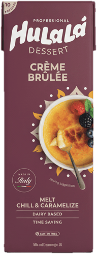 Ez a HuLaLá Professional Desszert Creme Brulée egy UHT sterilizált folyékony készítmény, amelyet kifejezetten Creme Brulée elkészítéséhez fejlesztettek ki. Alkoholmentes, és ideális választás desszertekhez.