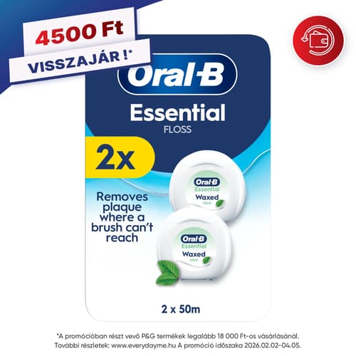 - Az Oral-B Essential Floss fogselyem segít fenntartani a szájhigiéniát, és megtisztítja a fogak közötti területeket