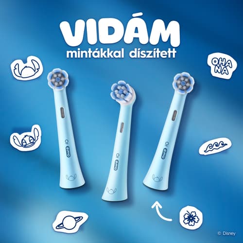 Az Oral-B iO Kids 6+ fogkefefej Stitch karakterével teszi szórakoztatóvá a fogmosást, miközben a fogorvosok által ajánlott Oral-B fogkefékre jellemző módon, gyengéden, de hatékonyan tisztít. Az extra puha sörtéket és a kis méretű, kerek fejet kifejezetten gyermekek számára tervezték: kíméletlen a fogszuvasodással szemben, ugyanakkor gyengéd a fogínyhez és a mozgó fogakhoz.