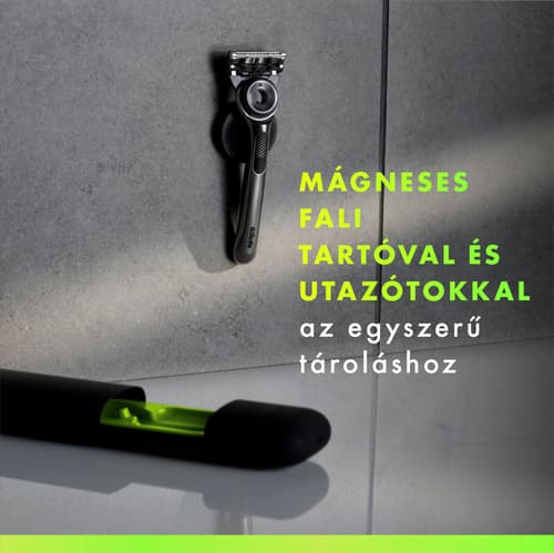 Gillette Labs Borotva Bőrradírral, 5 db Borotvabetéttel, Fali Borotvatartóval és Utazótokkal