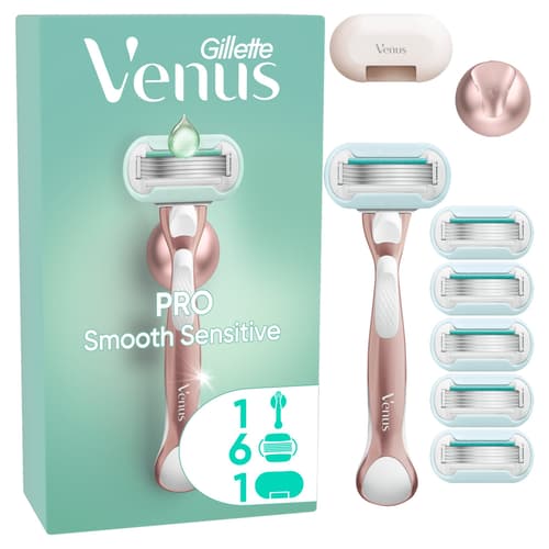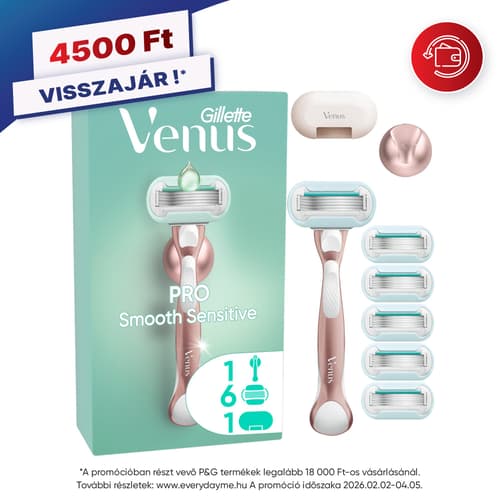 Gillette Venus Pro Smooth Sensitive Női Borotva 6 db Borotvabetéttel, Fali Borotvatartóval és Pengevédővel