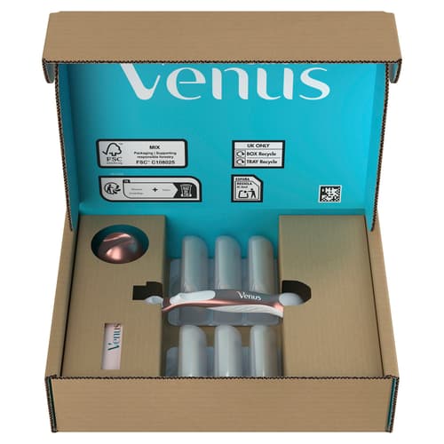 - TARTÓS FÉMMARKOLAT: A markolat súlyeloszlása kiváló irányíthatóságot biztosít, és bármely Venus borotvabetéttel használható