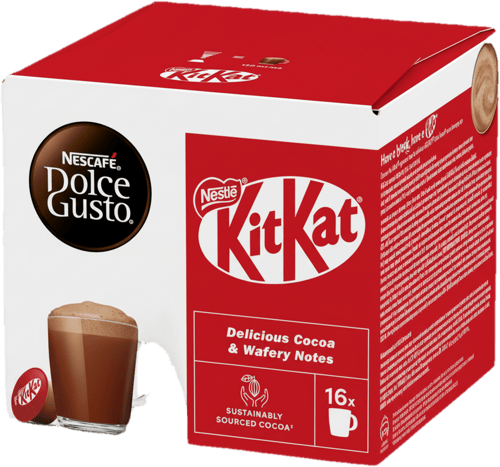 A NESCAFÉ Dolce Gusto KitKat forró csokoládé kapszula az egyik legizgalmasabb "sweet treat" a Dolce Gusto kínálatában. Ez a termék a népszerű ostyás csokoládé, a KitKat jellegzetes ízvilágát emeli be a kávégépedbe – kávé nélkül, hiszen ez egy tiszta forró csokoládé ital.