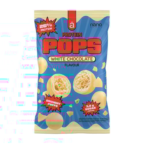 A Nanosupps Protein Pops egyedülálló snack, amely ötvözi a ropogós textúrát és a prémium fehércsokoládé ízét. A 26%-os fehérjetartalommal rendelkező golyócskák tökéletes választást nyújtanak azok számára, akik egészséges életmódot követnek, de nem szeretnének lemondani az édességek élvezetéről. Gluténmentes, és két fenséges ízben elérhető, hogy mindenki megtalálja a kedvencét.