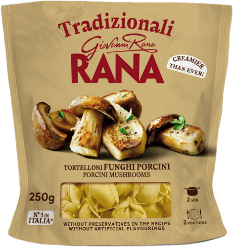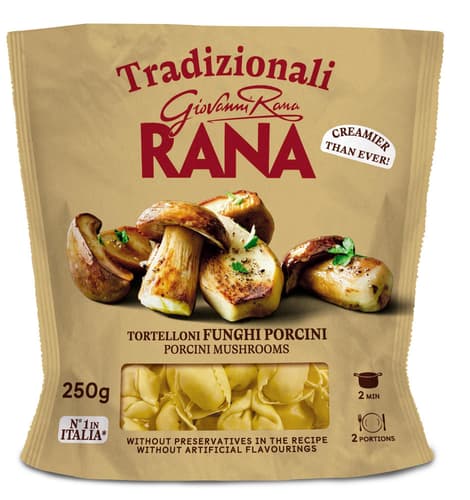 A Rana Tortelloni vargányagombás töltelékkel egy prémium minőségű, olasz stílusú friss tészta, amely gazdag vargányagombás töltelékkel van megtöltve. A vargánya aromája mély, földes és karakteres, ami tökéletesen kiegészíti a lágy, selymes tésztát, így minden falatban intenzív, elegáns ízélményt nyújt.