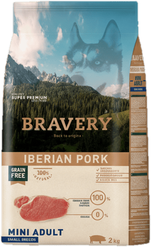 2 kg🐶 Bravery Mini – Ibériai sertéshúsos felnőtt kutyatáp, 2 kg