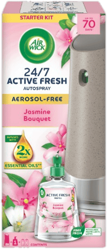 💐 Töltsd meg otthonod friss, virágos illattal! Az Air Wick Active Fresh automata légfrissítő készülék jázmin csokor illata elegáns és üde, így minden helyiséget kellemes, hosszan tartó aromával tölt meg.