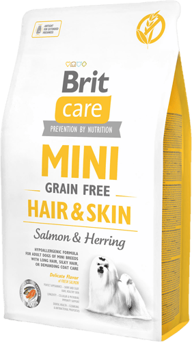 Brit Care Mini Hair & Skin kutyatáp kistestű kutyáknak, lazac és hering 2kg