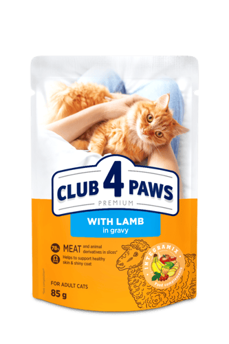 Litvánia,Club 4 Paws Premium – bárány szószban, 85 g 🐑🐱