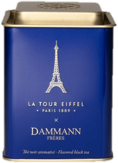 Fekete szálas tea virágszirmokkal, vaníliával, mandulával ízesítve, rózsa olajjal elegáns kék fém dobozba csomagolva, Az ikonikus Eiffel torony díszitéssel. A Dammann Frères és az Eiffel-torony együttműködésére megálmodott tea könnyed és kifinomult: válogatott fekete teák harmonikus keveréke, mandula-, vanília- és rózsajegyekkel. A recept a kézműves cukrászok és parfümkészítők szaktudását kapcsolja össze, megidézve és világszerte közvetítve a francia életstílus esszenciáját.