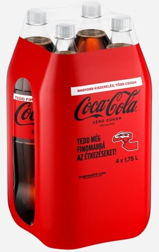 Élvezze a Coca-Cola Zero Sugar klasszikus kóla ízét cukor és kalória nélkül! Ez a magyar gyártású szénsavas üdítőital édesítőszerekkel készült, így ideális választás, ha a megszokott ízt keresi, de odafigyel a cukorbevitelre. A praktikus multipack 7 literes (4x1,75l) kiszerelésben kapható, visszaváltható csomagolásban, így mindig kéznél van. Fogyassza hűtve!