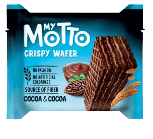 A My Motto kakaós krémmel töltött ostya ropogós textúrájával és intenzív ízével ideális választás az édességek kedvelőinek.