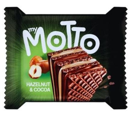 Intenzív ízzel rendelkezik, amely azonnal felébreszti az ízlelőbimbókat. Édes menekülés a mindennapok rutinjából. A My Motto mogyorós-kakaós ostya segít, hogy egy pillanatra kiszakadj az őrült élet hullámvasútjából. Állj meg, dőlj hátra, és kényeztesd magad valami különlegessel!