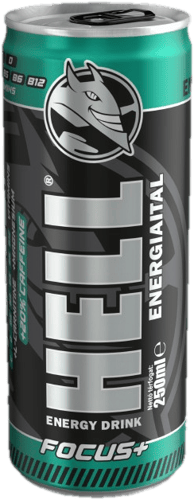 HELL Focus+ Energy Drink - Mangó-, narancs- és tuttifruttiízű, koffeintartalmú, szénsavas, alkoholmentes ital hozzáadott vitaminokkal, magnéziummal és L-karnitinnel. Pasztőrözött.