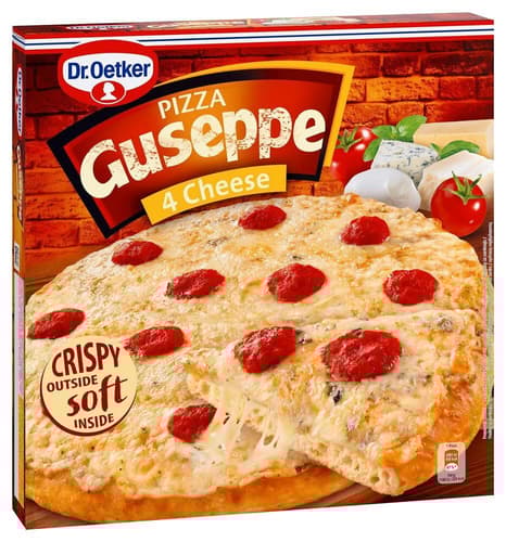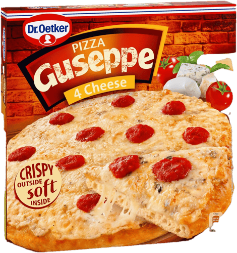 Guseppe Pizza négysajtos, gyorsfagyasztott. Vastagtésztás pizzaélmény, sajtkülönlegességekkel gazdagon megrakva kényezteti a pizzakedvelő ínyenceket.