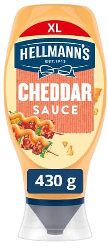 Hellmann's XL Cheddar sajtszósz gluténmentes, és ideális választás szendvicsekhez, salátákhoz vagy főzési alapanyagként. Kiválóan illik különféle ételek ízesítéséhez.