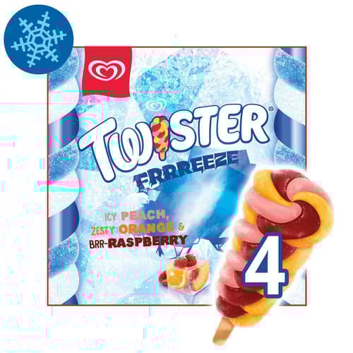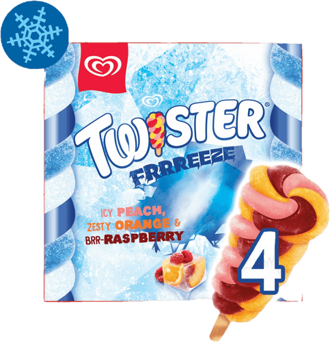 Fedezd fel a Twister Freeze jéghideg élményét multipack formátumban is! A Twister valaha volt leghűsítőbb ízű jégkréme, ami tökéletes a forró nyári napokra. Élvezd az őszibarack, narancs és málnás-almás ízek frissítő találkozását.