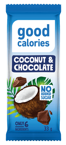 A Good Calories szelet kókusz és csokoládé ízvilágával természetes és egyszerű összetevőket kínál. Vegánok és vegetáriánusok számára is alkalmas, pálmaolaj és hozzáadott cukor nélkül készül.
