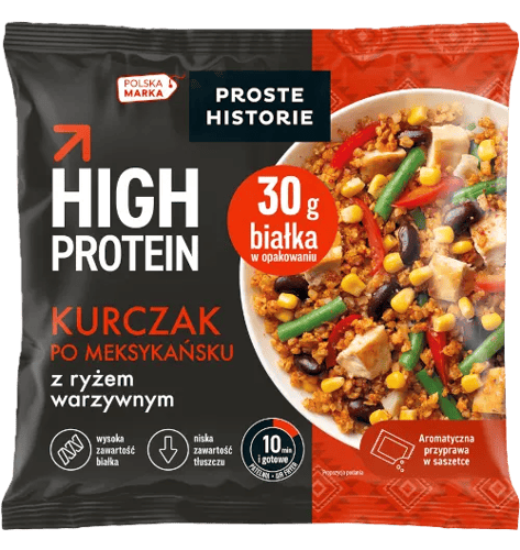 Kóstolja meg a finom és magas fehérjetartalmú Proste Historie mexikói csirkét zöldséges rizzsel! Ez a gyorsfagyasztott lengyel készétel omlós sült csirkemellfilét és ízletes zöldségkeveréket tartalmaz, apróra vágott karfiolrizzsel. Egy praktikus 400g-os csomag, ideális egy gyors és laktató étkezéshez. Csak melegítse fel, és élvezze a vibráló mexikói ízeket!