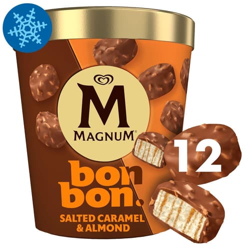 A Magnum Sós Karamell & Mandula Bonbonok a vanília ízű jégkrém, az intenzív sós karamellás szósz és a ropogós manduladarabkák tökéletes kombinációját kínálják. A tejcsokoládé bevonat teszi teljessé az élményt.