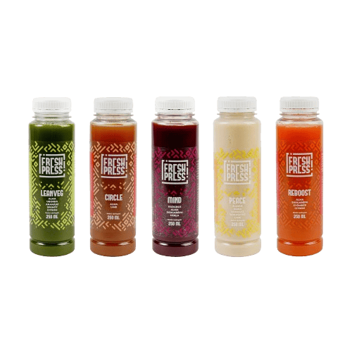 6 db Leanveg (73 % almalé, 10 % uborka, 10 % ananász, 4 % spenót, 3 % citromlé), 6 db Mind (40 % narancs, 30 % alma, 15 % sárgarépa, 15 % cékla), 4 db Circle (97 % almalé, 7 % limelé), 4 db Peace (35 % banán, 30 % alma, 25 % ananász, 9 % kókusztej, 1 % limelé), 4 db Reboost (72 % almalé 25 % sárgarépalé, 2 % gyömbérlé, 1 % citromlé)