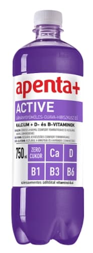 Apenta+ Active sárkánygyümölcs-guava-hibiszkusz ízű szénsavmentes, energiamentes üdítőital édesítőszerekkel, természetes ásványvízzel, D- és B-vitaminokkal, kalciummal.