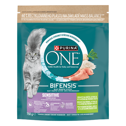PURINA ONE® Sensitive pulykában gazdag száraz macskaeledel 750 g