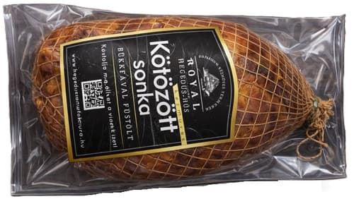 A Royal Gourmeat kötözött sonka prémium minőségű, hagyományosan készített sonka, amely gazdag, karakteres ízével és szaftos állagával igazi ínyenc élményt nyújt. A kötözött forma biztosítja a sonka egyenletes érését és formájának megőrzését, miközben a hús természetes aromái koncentráltan érvényesülnek.