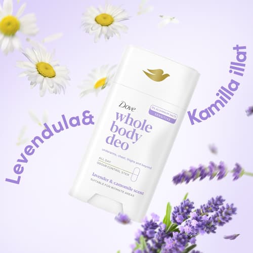 Fedezze fel az új Dove Teljes Test Deodorant Sticket, egy 2 az 1-ben megoldást nyugtató levendula és kamilla illattal. Ez az innovatív EU termék teljes test védelmet nyújt, egész nap frissen és kényelmesen tart, miközben segít megelőzni a bőrirritációt. Bőrgyógyászatilag és nőgyógyászatilag tesztelt, gyengéd a mindennapi használatra a hónaljon, mellkason vagy lábakon. A 75 ml-es stift kényelmes, precíz felvitelt nyújt a mindennapi komfortért.