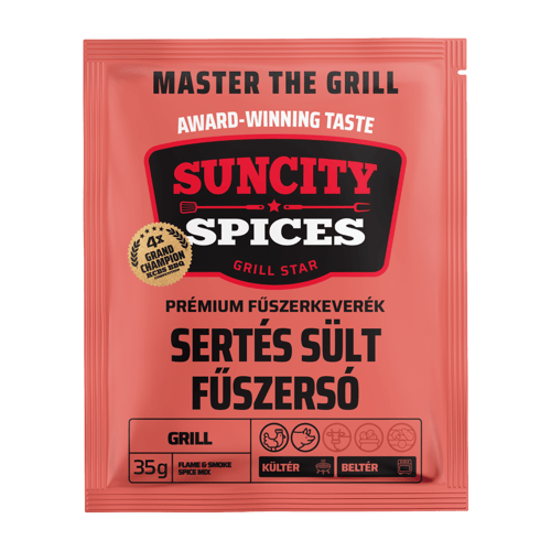 Dobd fel a sertés húsokat az új Suncity BBQ fűszersó segítségével! Unod a tarját? Nem megy az oldalas? Nem látsz fantáziát a grillezésben, ha sertés készül? Akkor ezzel a fűszersóval gyökeresen megváltozik az álláspontod, A fűszerpaprikától és az őrölt koriandertől gyönyörű köntöst kap bármilyen disznóság, a fokhagyma csavar egyet rajta, a feketebors éppen annyira dob az összhatáson, amennyi szükséges, a többi fűszer pedig felrakja az i-re a pontot. Elő a grillel!
