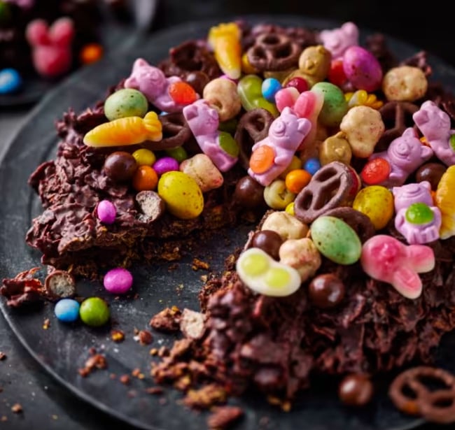 „A Marks & Spencer egyik ikonikus terméke, az eredeti Scrummy Bunny Munch ellenállhatatlan húsvéti finomságok válogatása. Tartalmaz gyümölcsízű gumicukrot, ropogós rizses belsővel ellátott, cukormázas tejcsokoládét, fehércsokoládéba forgatott pattogatott kukoricát, valamint tejcsokoládéval bevont sós perecet és malátagolyókat.