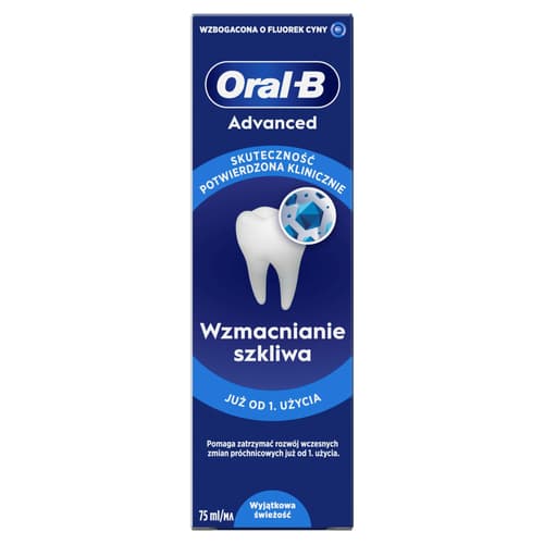 Az Oral-B Advanced Enamel Strenghtening Clean Mint fogkrém klinikailag igazoltan segít megelőzni a kezdeti stádiumú fogszuvasodást már az első használattól kezdve. Az egyedülálló, ón-fluorid-komplexet tartalmazó antibakteriális technológia egy védelmet nyújtó mikro záróréteget képez, amely még két fogmosás között is véd az ásványianyag-vesztéssel szemben, és aktívan helyreállítja a fogak keménységét. Fogkrém mindennapos használatra.