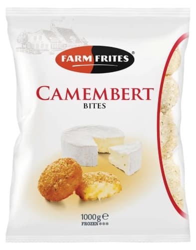 A Farm Frites Camembert falatok elősütött, mélyhűtött, panírozott camembert sajtból készülnek. Sütés után ropogós külsőt és olvadós belsőt adnak.