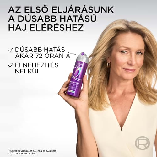 Adj azonnali volument a hajadnak mindössze 3 másodperc alatt! Ez a tri-adagolóval működő spray +0,4 cm-rel emeli a hajtöveket, hogy láthatóan dúsabb, ragyogó és puha haj legyen akár 48 órán át. Élvezd a volumenteljes, friss haj érzését minden nap!